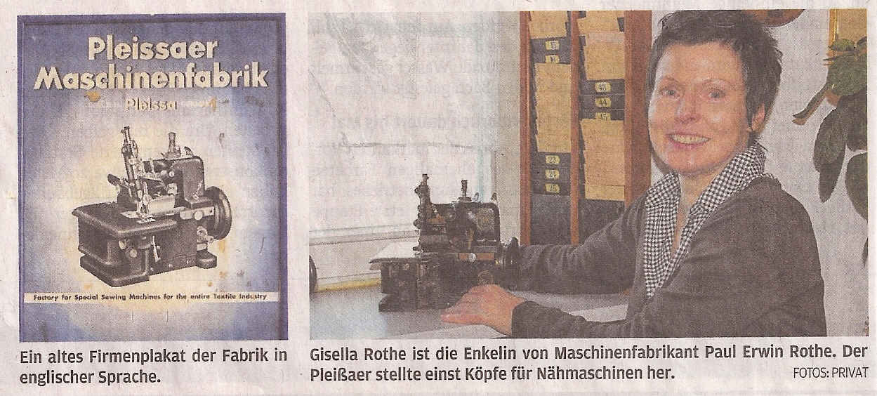 Hessin will Textilgeschichte ihrer Familie aufarbeiten Gisella Rothe ist die Enkelin des Nähmaschinen-Fabrikanten Paul Erwin Rothe. Der stellte in Pleißa die Pleißaer Superior" her. Pleißa - Drei Nähmaschinen-Köpfe aus der Fabrik ihres Großvaters Paul Erwin Rothe besitzt Gisella Rothe schon. Die Geräte namens Pleißaer Superior" stehen bei der 62-Jährigen zu Hause in Mühltal-Traisa, einer Gemeinde in der Nähe von Darmstadt. Es hat mich sehr viel Ausdauer gekostet, an die Maschinen heranzukommen. Eine war beispielsweise früher in einer Hutfabrik in Leipzig im Einsatz", erzählt sie. Neben den Maschinen hat Gisella Rothe ein altes Firmenplakat, eine Jubiläumsurkunde der damaligen Angestellten zum zehnjährigen Bestehen, ein Stechkartenfach sowie ein Foto des Opas mit ihr als kleines Mädchen vor der Fabrik an der Klausstraße 11 gesammelt. Zudem besitzt sie Kopien aus dem Staatsarchiv zur Gründung des Unternehmens vor 95 Jahren. Das ist nur der Anfang: Die Hessin will weitere Erinnerungsstücke zusammentragen. Ihr Ziel ist eine Familienchronik zu schreiben, in der die Pleißaer Nähmaschinenfabrik im Mittelpunkt steht. Mittlerweile hat sie auch mit Zeitzeugen gesprochen, die ihr über Paul Erwin Rothe berichteten. Mit anderen Limbachern hat sich die Hessin über die Zeit des VEB Spezialnähmaschine Pleißa ausgetauscht, einem 1974 gegründeten Nachfolgebetrieb, in dem die Pleißaer Maschinenfabrik neben drei anderen Betrieben aufgegangen ist. Zwangsverkauf zu DDR-Zeiten Die 1951 in Chemnitz geborene Gisella Rothe kann sich nur noch wenig an ihren Großvater erinnern. Wir sind bis 1960 fast jedes Wochenende nach Pleißa gefahren", erinnert sie sich. Ihre Großeltern lebten damals im Haus direkt vor der Fabrik. Allerdings habe sich vor allem die Oma um sie gekümmert, ihr Großvater habe dagegen nur wenig Zeit gehabt. Ich habe ihn als strengen und zielgerichteten Mann in Erinnerung. Er hat seine Interessen gnadenlos verfolgt und hätte bis zu seinem letzten Atemzug in der Fabrik gearbeitet." Allerdings sei er 1972 gezwungen worden, sie zu verkaufen. Der Zwangsverkauf war ein Stich in sein Herz." Gisella Rothe fehlen noch viele Puzzleteile, um die Unternehmensgeschichte komplett aufzuarbeiten. Bisher hat sie beispielsweise noch keine Liste mit Kunden und Zulieferern der Firma. Es wurde mir gesagt, dass ursprünglich sowohl nach Amerika als auch nach China geliefert wurde. Nach dem Krieg brachen dann aber die Aufträge aus Übersee ein", sagt sie. Wenn sie in Rente geht, will die 62-Jährige ihre Forschung intensivieren und längere Zeit in Limbach-Oberfrohna verbringen. Erste Kontakte mit den Mitarbeitern des Esche-Museums hat die Hessin bereits aufgenommen. Allerdings ist auch dort die Aktenlage über die Pleißaer Maschinenfabrik eher dürftig. Beitritt in Verein In den 1990er-Jahren haben ABM-Kräfte Einwohner zu den Textilunternehmen der Stadt befragt. Der Förderverein hat ihr die Gesprächsnotizen der Umfragen zugeschickt. Laut Vereinsmitglied Frank Winter gab es Anfang des 20. Jahrhunderts im Raum Limbach wahrscheinlich zwölf Nähmaschinen-Fabriken. In Pleißa waren es demnach zwei. ( Rothe & Thomä sowie Ernst Schubert ) Anfragen von Privatpersonen treffen häufig im Museum ein, wie Irmgard Eberth, Fördervereinschefin, sagt. Aber die Recherchen von Gisella Rothe seien etwas besonderes. Nicht jeder will gleich eine Chronik verfassen." Deshalb freue sie sich, dass die Hessin jetzt Mitglied im Förderverein geworden ist. Kontakt : gisella.rothe@yahoo.de VON CHRISTIAN MATHEA - FP vom 19.02.2014 |