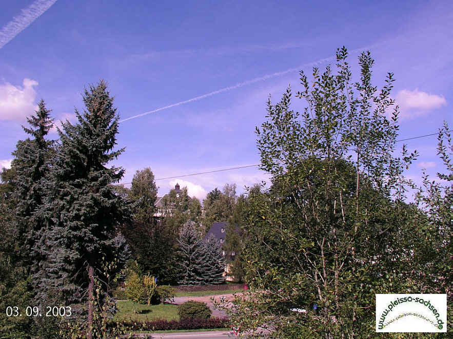 Schule und Pfarrhaus heute - man sieht sie kaum noch.... Dagegen 1925, vom (fast) gleichen Standpunkt aus: Blick bis zur "Chausee" und offenbar ein Teich im Pfarrgarten.... | 2002 | Das Pfarrhaus heute und 1979 | ||||||||||||||||||||||||||||||||||||||||||||||||||||||||||||||||||||||||