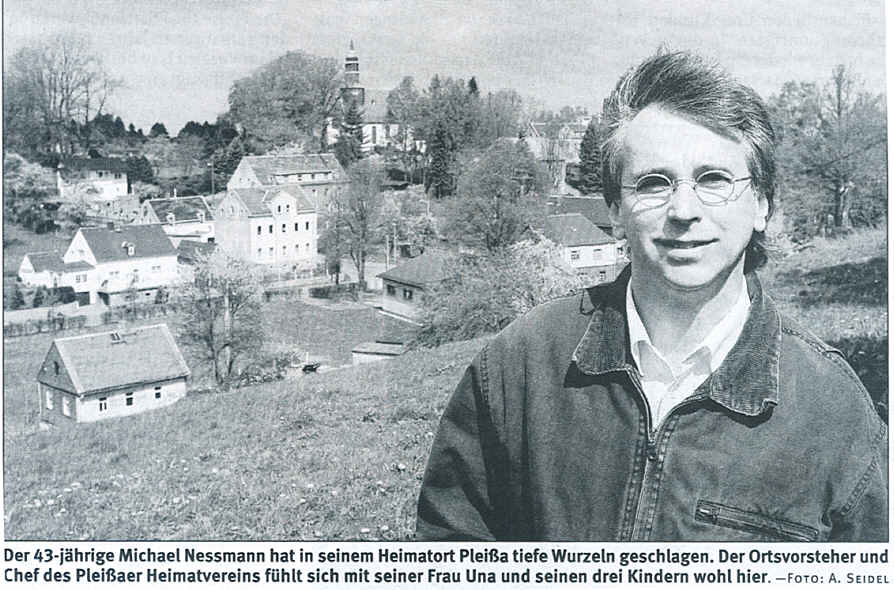 Pleißaer sind ein geselliger Menschenschlag UMLANDGESCHICHTEN: Michael Nessmann ist Ortsvorsteher und Chef des Heimatvereins - Im Ort kann sich jeder geborgen fühlen VON JÜRGEN SORGE Sie sind weggegangen und heimgekehrt, sie haben sich fürs Hierbleiben entschieden: Menschen im Chemnitzer Umland. Die großen Veränderungen dieser Zeit spiegeln sich in ihrem Leben. Sachsen hat seit 1990 neun Prozent seiner Bevölkerung verloren.WasMenschen in derRegion hält, findet sich in ihrem Alltag wieder.Wir haben uns mit ihnen unterhalten und stellen sie vor: Menschen, die im Umland von Chemnitz leben. Limbach-Oberfrohna/OT. Pleißa. Die Pleißaer sind ein geselliger Menschenschlag. Sie gelten als bodenständig. Und man kann sie leicht an ihrer Sprache erkennen", schmunzelt Michael Nessmann. Der 43-Jährige hat in seinem Heimatort tiefe Wurzeln geschlagen. Der Ortsvorsteher und Chef des Pleißaer Heimatvereins fühlt sich mit seiner Frau Una und seinen drei Kindern Benjamin (20), Christiane (17) und Simon (15) im Ort wohl. Geht er durch Pleißa, kommen ihm viele Gedanken und Erinnerungen. Einer seiner Lieblingsplätze ist der Weg oberhalb des Forstgutes, wo von 1869 bis 1871 der bekannte Luftfahrtpionier und Oberförster Georg Baumgarten lebte. Von dieser Anhöhe bietet sich ein Blick auf den Ort, über Wald, Wiesen, Äcker. Da werden auch Kindheitserinnerungen wach, wo ihm die Landschaft Natur pur, Freiheit und Abenteuer bot. Er denkt an den Volksgutteich, auf dem er im Winter Eishockey spielte, an die Christmetten, die er als Zuschauer, später auch als Mitspieler in der Kirche des Ortes erlebte. "Im Herbst halfen wir den Bauern beim Heueinfahren und bei der Kartoffelernte. Abends saßen wir oft noch lange mit den älteren Leuten zusammen und haben miteinander geredet", erzählt Nessmann. Die heutige Grundschule war damals eine zehnklassige Oberschule, "wo wir alle allerhand gelernt haben", das "Schützenhaus" war Konsum- gaststätte. Hier habe ich die ersten Schülerdiskos und die richtigen Diskos am Abend erlebt. Ins Schützenhaus gehen wir heute noch gern - jetzt zur Oldiedisko", lacht Nessmann. Das imposante Rathaus erinnert ihn an die Geschichte des Ortes. Erbaut wurde es 1925/26, als die Pleißaer durch die Landwirtschaft und die Textilindustrie zu Wohlstand gekommen waren. Damals lebten fast 4000 Einwohner in der Gemeinde. "Bis 1995 fiel die Zahl auf unter 2000. jetzt ziehen jedoch wieder mehr Leute zu uns", freut er sich. Bedauerlich findet der Pleißaer,dass manche anderen prägende Gebäude wie etwa das Volksgut an der Chemnitzer Strasse nicht erhalten werden konnten. Stolz ist der Ortsvorsteher dagegen auf das Gewerbegebiet West, das 1991 auf den Weg gebracht wurde, auf viele Wohnhäuser und Bauerngüter, die schmuck saniert sind. Und da ist das rege Vereinsleben. "In den Vereinen finden die Einwohner Anschluss. Da muss keiner anonym leben wie in der Großstadt. Außerdem bietet die Gemeinschaft, wie sie auf dem Dorf praktiziert wird, jenen Halt, deren Euphorie der Wendezeit sich durch Arbeitslosigkeit oder fehlende Lehrstellen inzwischen ins Gegenteil verkehrte", weiß er. Die älteren Pleißaer fühlen sich in der Volkssolidarität wohl. Es gibt den Fußballverein, Arbeitersportverein, Hundesportverein, Schützenverein und natürlich den Heimatverein. Gegründet wurde der 1999, als die Eingemeindung nach Limbach-Oberfrohna zur Debatte stand. "In die Große Kreisstadt haben sich die Pleißaer gut eingefügt. Es braucht ja nicht jeder Ort eine eigene große Verwaltung. Wichtig ist aber, dass sich viele Leute für den Ort engagieren, Ideen einbringen und selbst mit zupacken. Genau das will der Heimatvereinfördern und damit Identität stiften", sagt Nessmann. Dazu gehört auch das Feiern. Schon jetzt fiebern die Pleißaer dem Dorffest vom 20. - 22. Juni entgegen. Denkt Nessmann weiter voraus, wünscht er sich, dass auch künftig alle Generationen in Pleißa gut miteinander harmonieren. Und vielleicht gehen einst meine Enkel auch einmal in Pleißa in den Kindergarten und in die Grundschule«, meint der Familienvater. Quelle: "Freie Presse" vom 03. Mai 2003 |