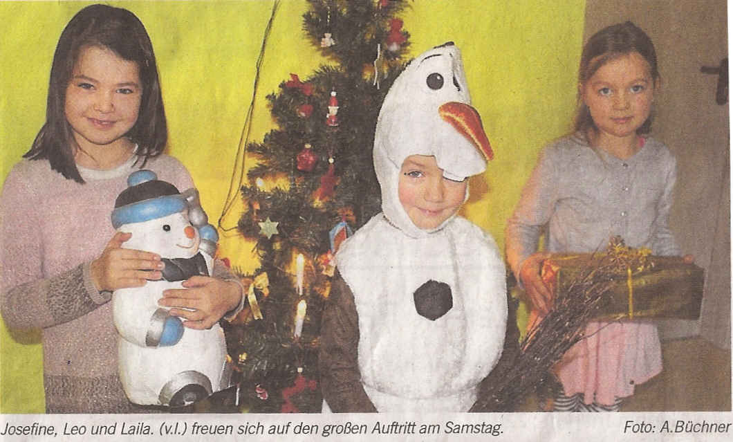 Alles singt" in Pleißa - Weihnachtszauber Pleißa AUFTRITT Traditionen rund um den Schwibbogen Am Samstag wird es auf dem Platz unterhalb der Kirche wohl wieder recht eng werden: Ab 15 Uhr laden der Heimatverein und der Feuerwehr-Förderverein zurn mittlerweile 20. Adventssingen vor den Schwibbogen ein. Dabei hoffen die Kinder der Krümelkiste" und der Grundschule sowie die Mitglieder des Singekreises und des Posaunenchores darauf, dass sie die Besucher auch zum gemeinsamen Musizieren bewegen können. Die Steppkes aus der Kita sind schon wieder einige Zeit am Üben, da mit am Samstag auch alles klappt: Unser aktuelles Programm werden wir auch bei der Weihnachtsfeier der Volkssolidarität aufführen", gab Jeannette Schlegel bekannt. Die Senioren haben sich dafür klassische Weihnachtslieder zum Mitsingen gewünscht, deshalb haben wir unsere Liedauswahl darauf abgestimmt." Die Leiterin der Einrichtung gab bekannt, dass solche Evergreens wie Oh Tannenbaum" dann auch mit Untermalung von winterlich-märchenhaften Kostümen zu erleben sind. Zwei Kinder moderieren" das Programm des Kindergartens mit kleinen Versen, welche sich auf die Lieder und die Jahreszeit beziehen. Auch wenn die Vorschulgruppe den Hauptteil der Aufführung bestreitet: Beim Schwibbogensingen werden hoffentlich auch die Kinder der anderen Gruppen kräftig ihre Stimmen ertönen lassen. Josefine, Olaf" Leo und Laila (Foto) freuen sich jedenfalls schon heute auf viele Zuschauer rund um ihr kleines Programm. Ein großer Grund zur Freude in der Krümelkiste" ist auch der Abschluss der Umbauarbeiten. Nachdem in der letzten Adventszeit der Lärm der aufwändigen Bauarbeiten doch etwas die Besinnlichkeit beeinträchtigt hatte, geht es in diesem Dezember viel ruhiger zu. Vor allem haben die Erzieher nun auch wieder genug Zeit, Weihnachtstraditionen in den Gruppen zu zelebrieren. Parkplätze sind Mangelware Wenn am Samstag die Pleißaer rund um ihren Schwibbogen zusammen singen, sind Parkplätze in der näheren Umgebung meist rar. Es wird darum empfohlen, wenn möglich zu Fuß zum Platz unterhalb der Kirche zu kommen. Auch der Weihnachtsmann benötigt Platz, um seinen großen Sack voller Geschenke anzuliefern". abu - Quelle: BLICK" vom 06.12.2017 * Gedanken des Ortsvorstehers * Michael Nessmann blickt in gern auf die großen Ereignisse 2017 zurück: Unsere Kirchenglocken wurden gegossen und geweiht und werden vermutlich zu Ostern erklingen", so der Ortsvorsteher. Wir haben die Fördermittelbescheide für unsere Turnhalle, das Schulaußengelände und die Fassade der Schule erhalten. Durch diese Millionenbeträge wird unsere ohnehin gute Infrastruktur weiter aufgewertet." Er wünscht sich für 2018, dass weiter so viel Leben in unserem Ort ist und dass sich noch mehr, vor allem junge Leute im Ehrenamt engagieren, weil es unwahrscheinlich wichtig ist und nur so ein Ort lebendig bleibt" Angesichts des rappelvollen Kindergartens ist ihm in Sachen junge Pleißaer" nicht bang. abu Adventssingen vor dem Schwibbogen Veranstaltung erlebt ihre 20. Auflage - Besucher sind zum Mitsingen eingeladen Pleißa. Weihnachtsstimmung pur gibt es am 9. Dezember in Pleißa zu erleben. Der örtliche Heimatverein und der Feuerwehrförderverein laden zum traditionellen Adventssingen vor dem Schwibbogen, unterhalb der Kirche, ein. Die Veranstaltung geht in die 20. Runde. Keine Marktbuden und Lärm von Besuchermassen prägen die Weihnachtsveranstaltung in Pleißa, sondern es geht eher besinnlich und ruhig zu. Wohltuend ist diese Eigenart im Vergleich zu den anderen Weihnachtsmärkten in der Region, wo jede Menge Hektik angesagt ist. Kein Wunder, dass das Adventssingen nicht nur die Pleißaer zum Schwibbogen zieht sondern auch immer mehr Besucher aus dem Umland. Beginn in diesem Jahr ist um 15 Uhr. Auftreten werden die Kinder des Kindergartens und der Schule. Weiterhin nehmen am Singen der Singekreis und der Posaunenchor teil. Und damit nicht nur Zuhören bei den Besuchern angesagt ist, laden alle Beteiligten auch zum Mitsingen ein. Und da Singen und Musizieren auch Hunger machen ist natürlich für .Essen und warme Getränke bestens gesorgt. uw Quelle: Wochenspiegel" vom 08.12.2017 |