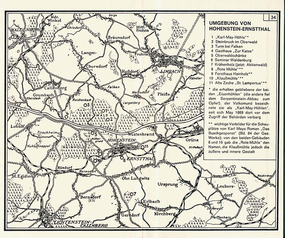 Karte des Umlandes - Karl May - Fan`s sicher bekannt ( Entliehen Bd. 34; Ges.Werke; "ICH" )